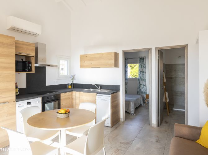 Appartement T2 de 35m² environ, entierement climatisé, avec une chambre, lit queen-size, Wi-Fi.