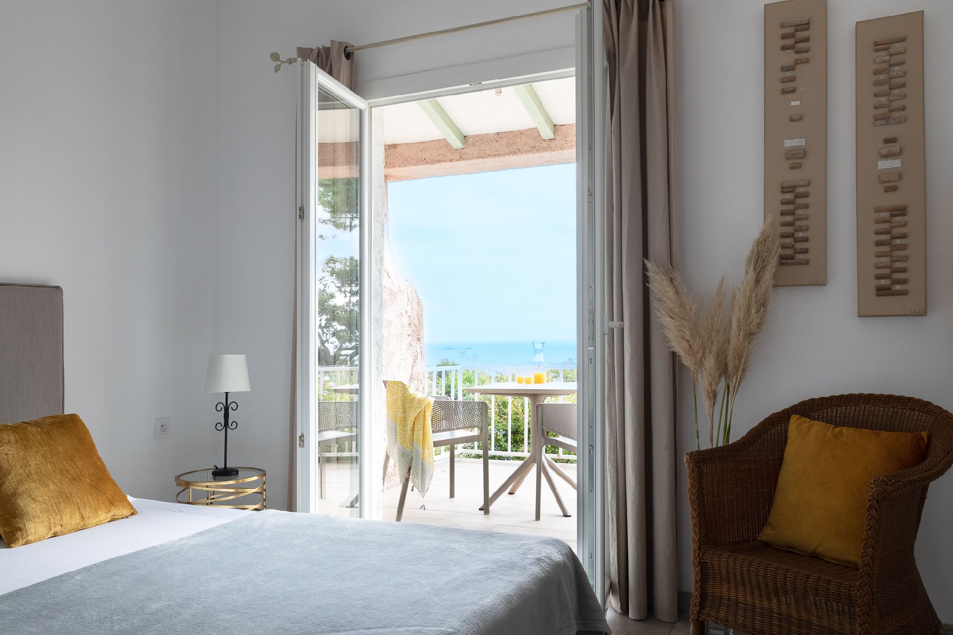 Terrasse avec salon de jardin, barbecue et vue mer & jardin